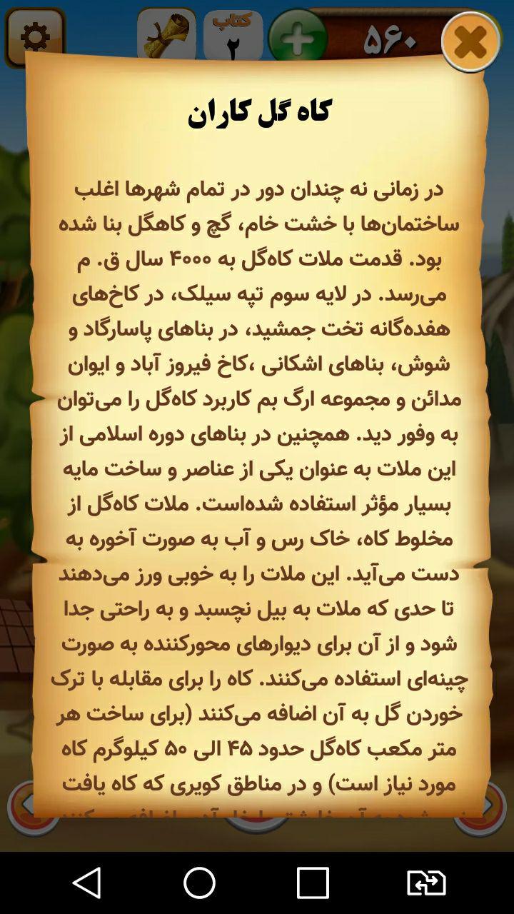 در این بازی با بهره گیری از فرهنگ تهران قدیم و معرفی مشاغل ,کاربر را در فضایی شاد و مفرح به چالش ساخت کلمات معنادار دعوت می کند ، رده سنی این بازی 3 تا 70 سال را در بر می گیرد.